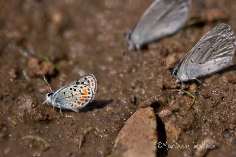 ![]() At the end of the hike Saturday, dozens of tiny Blue Butterflies (only an inch across) and also dozens of giant Swallowtails were flying around a pool of water. I would have liked to have a photo showing the above with their wings open...periwinkle blue.... but they were too small and moved too fast to keep in my viewfinder! They're drinking, by the way.