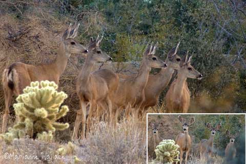 ![]() The inset photo shows Mule Deer reacting as I opened my front door this morning! They waited long enough for a second photo showing their reaction to hearing someone on the path.